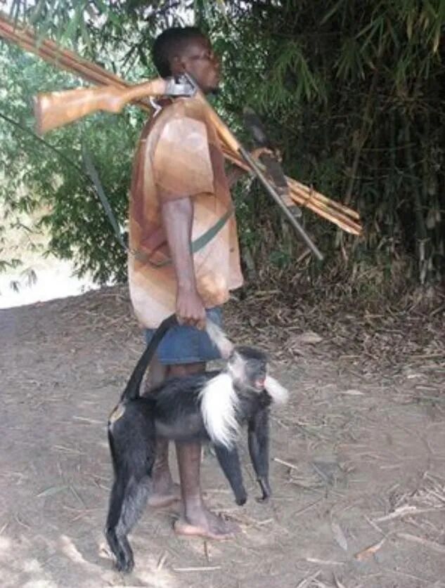 如果是在中国,猴子是国家保护动物。就算是在动物园,也是享受着饲养员和游客的宠爱。但是在非洲,猴子命如草芥,猎杀根本没人管。
