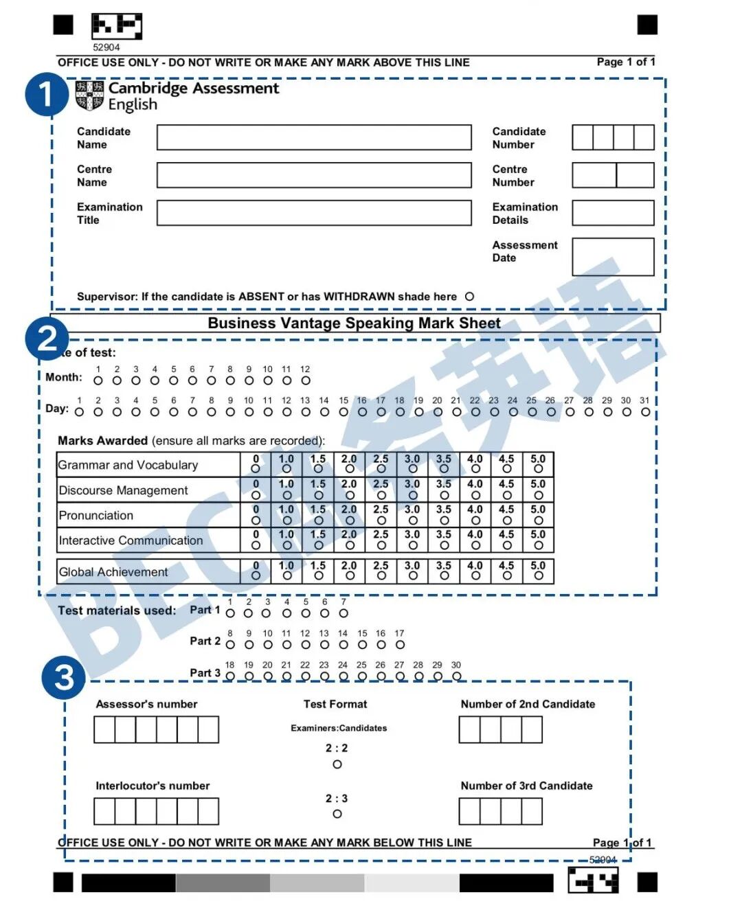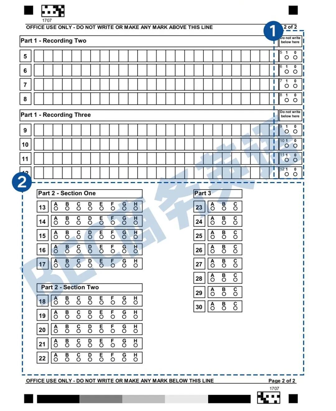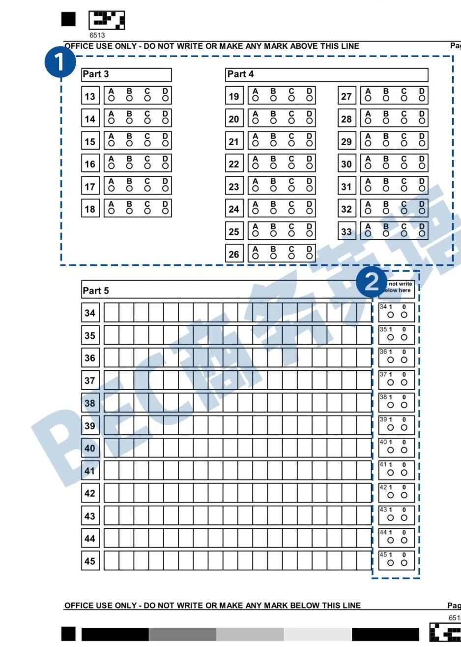 01、BEC答题卡到底长啥样?因为BEC高级与中级答题卡差别不大,所以今天就以BEC中级的答题卡为例,BEC答题卡自2019年开始使用这一版,之后这些年没变 ↓↓↓