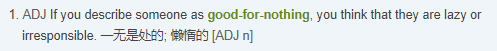 这里给大家分享“good-for-nothing”这个词,来看看该词在字典中的定义: