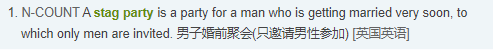 与之相对的,男性的婚前派对叫“stag party/night”: