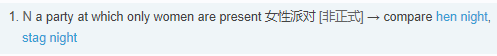 所以,顾名思义“hen party”就可以理解成为“婚前派对、女人的聚会”:
