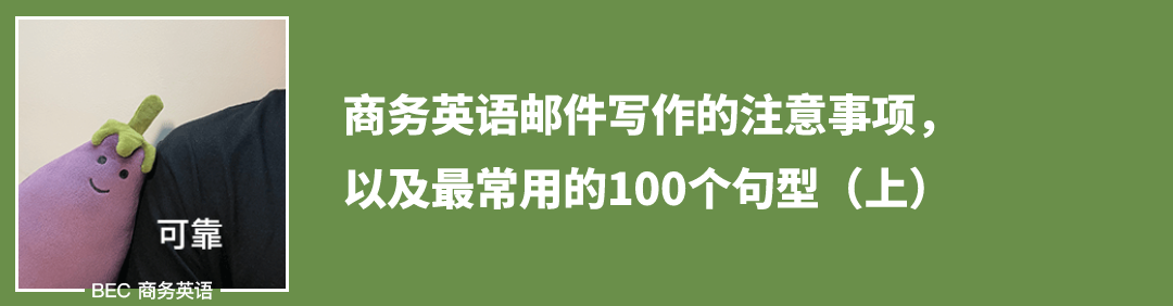 昨天,我就为大家整理了商务英语邮件写作的注意事项,和比较常用的100个句型的上半部分1-50句,今天咱们趁热打铁,继续来看剩下的50句表达。错过前1-50句的宝子们可以戳下方图片查看