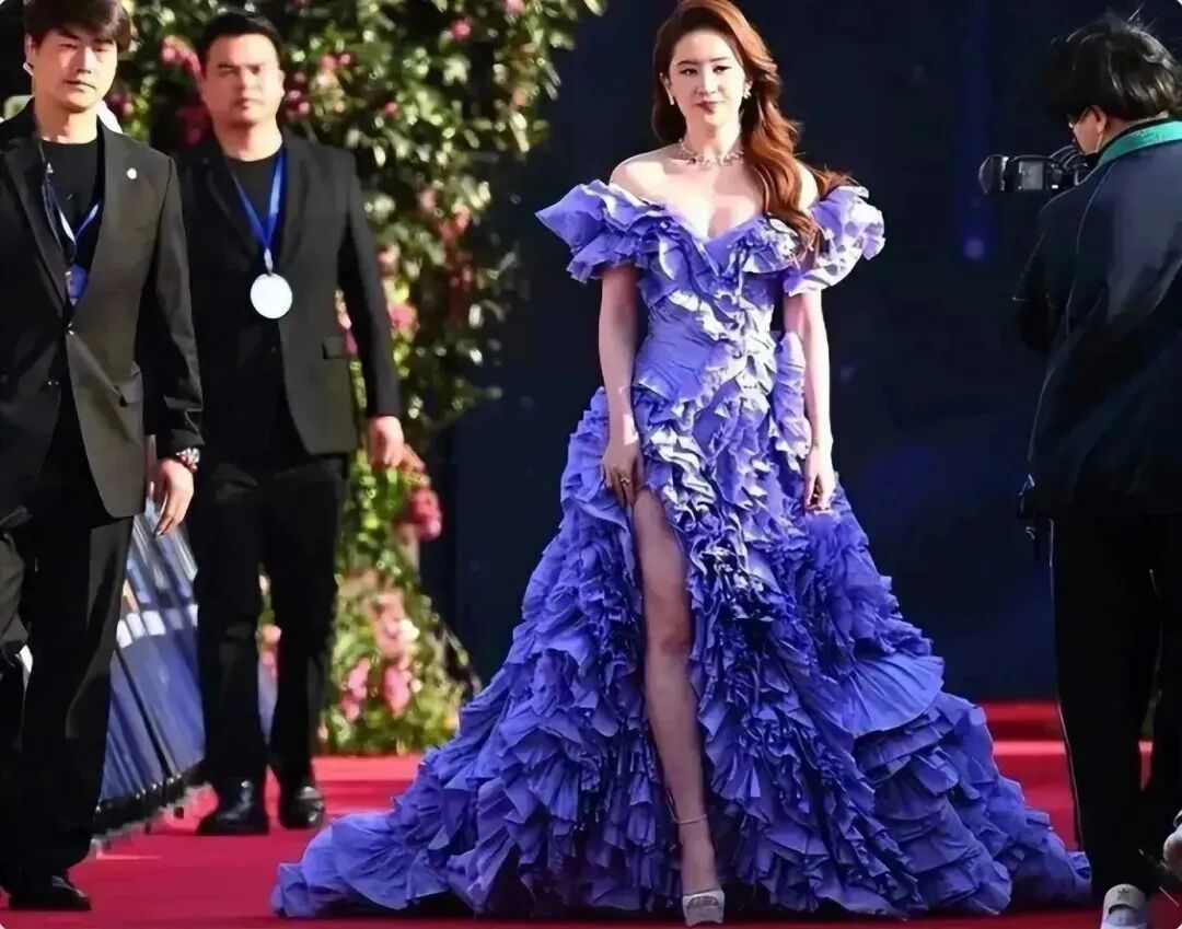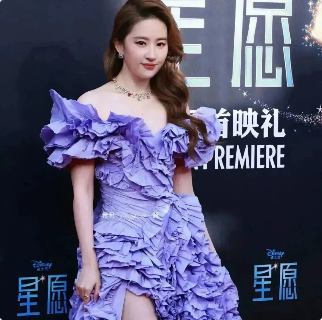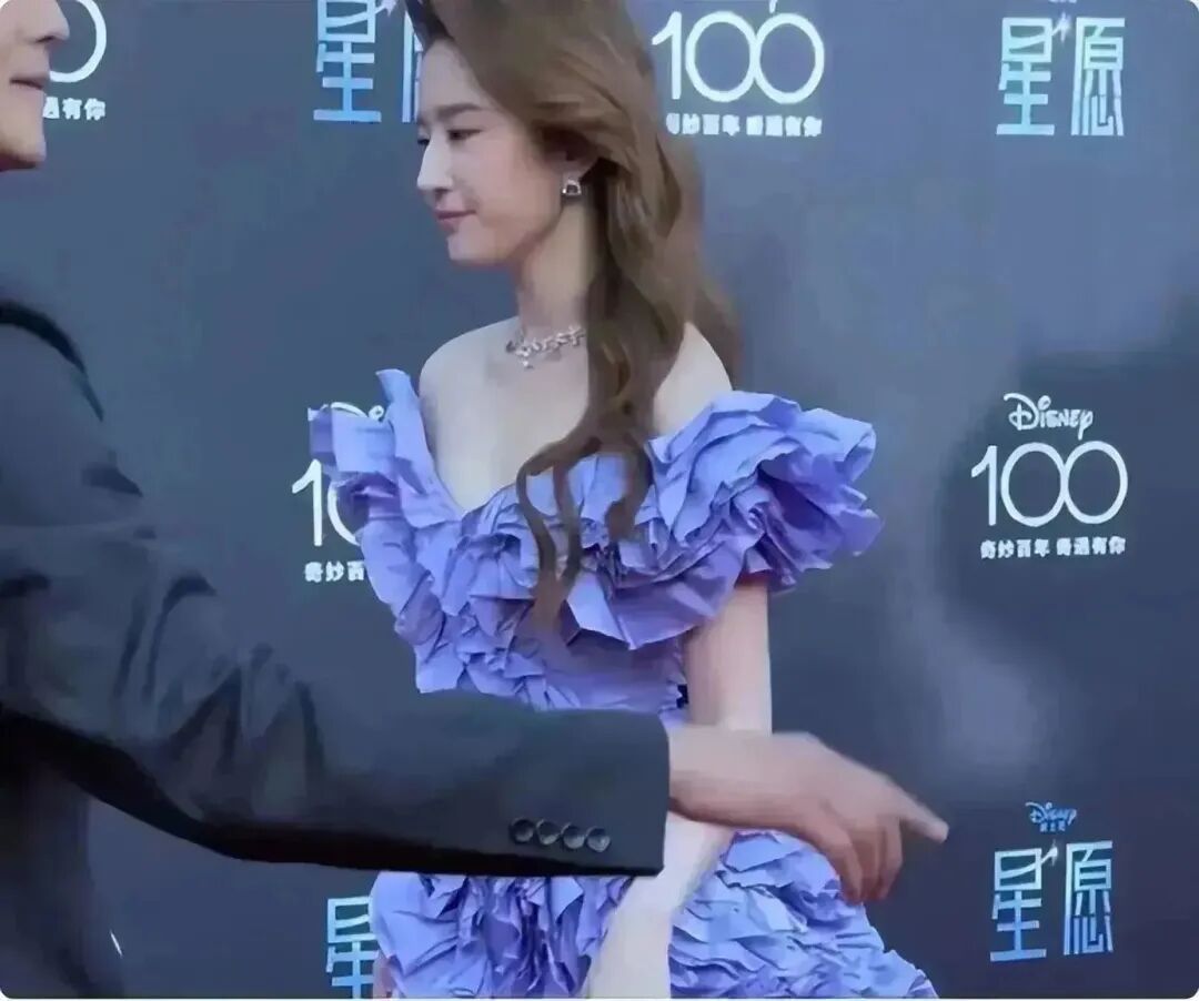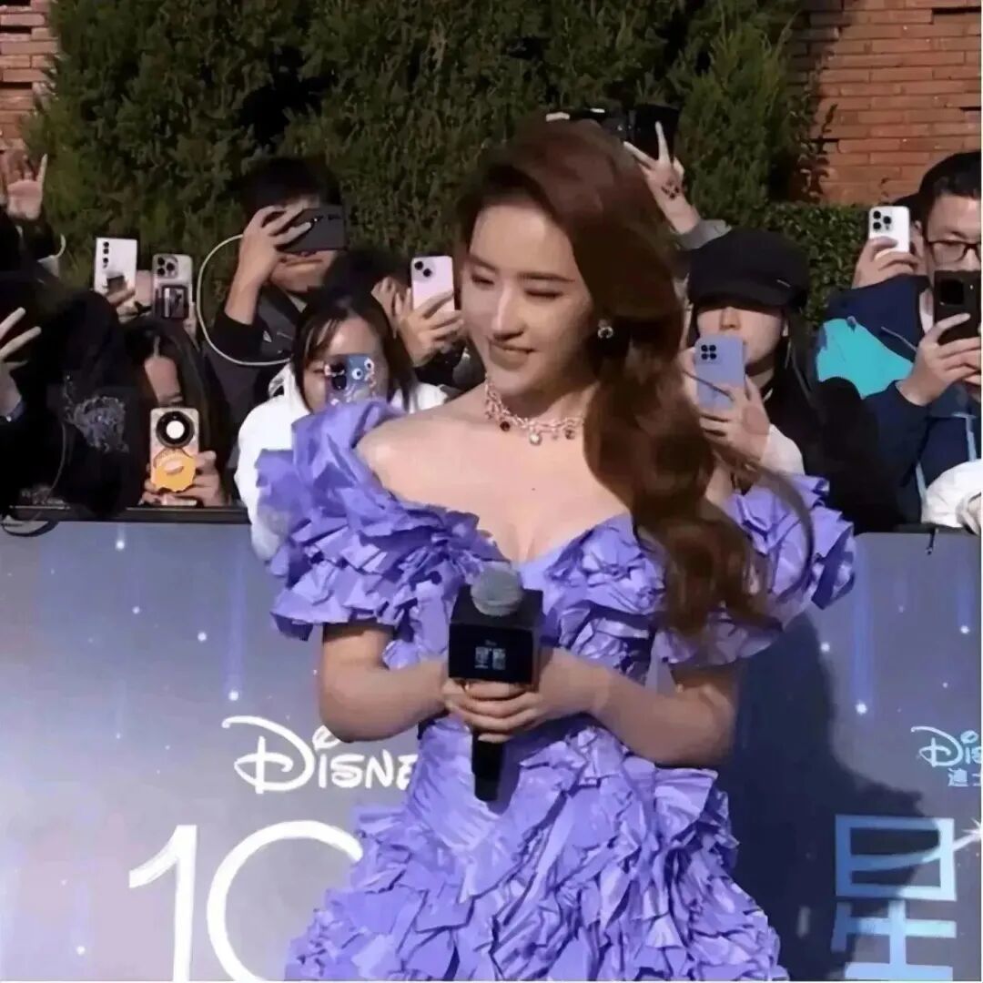 在这次红毯上,刘亦菲的定位很明确,就是妥妥的迪士尼在逃公主,走红毯时, 刘亦菲穿着一身紫色的礼裙,花团锦簇的礼裙设计,让整个裙子都透着优雅高贵的即视感,当刘亦菲缓缓走来,观众还能隐隐看到礼裙高开叉设计专门露出的美腿。