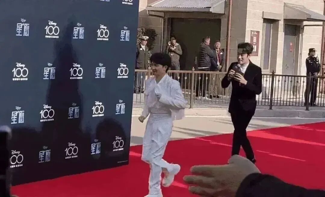 在迪士尼的红毯上,周深更像是一位精灵王子,优雅灵动的同时也会时不时地冒出一些可爱的瞬间,让生硬的走红毯环节更加有趣。