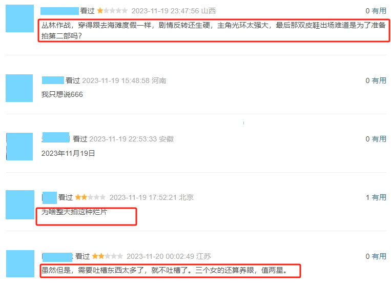 有网友直言“为啥整天拍这种烂片?”。