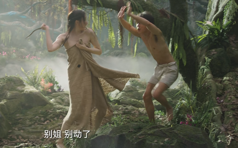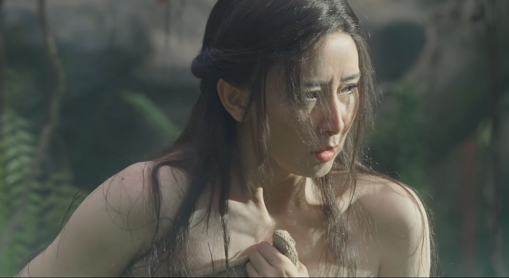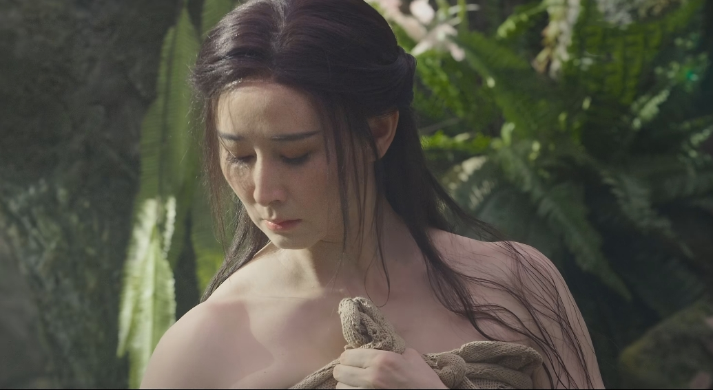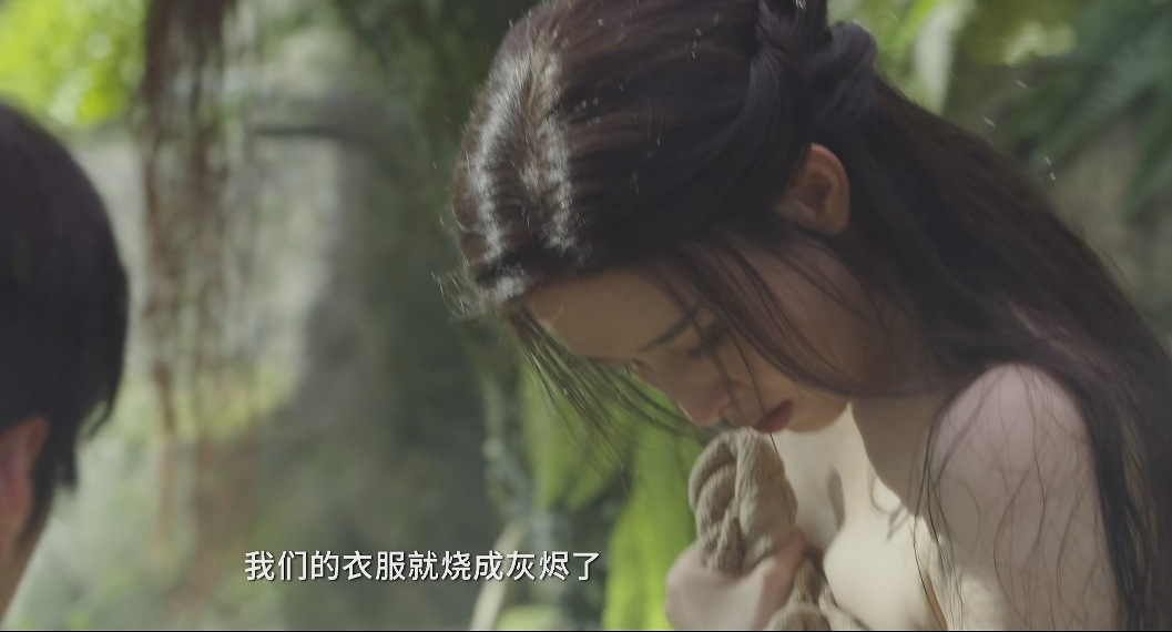 除了胡静和马伯骞莫名其妙的搭配之外,就连电影里的小配角也难免露肉的命运,戏份不多的女配,就有一场被吊在树上,衣服直接掉到大腿根的戏。