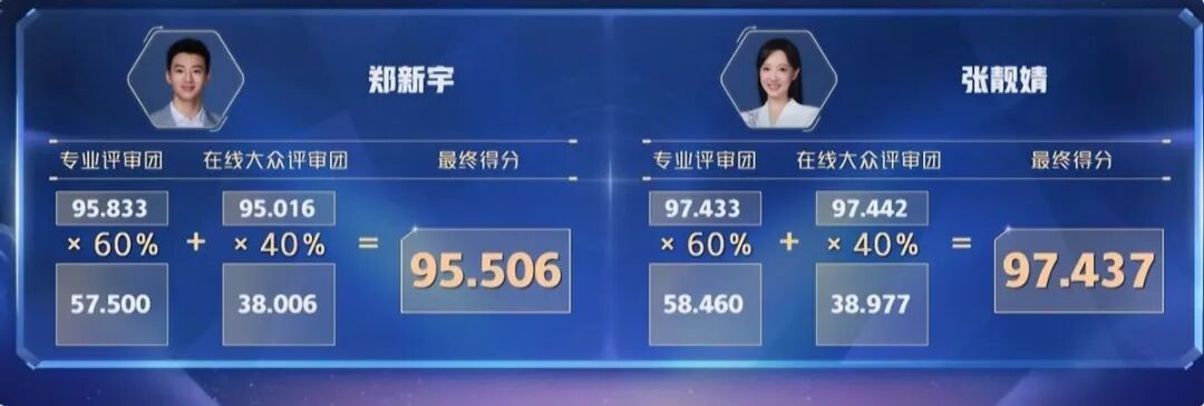 相比于另一位选手郑新宇,张靓婧明显得到了更热烈的现场反馈,最终她的分数,也以大比分的差距优于郑新宇。