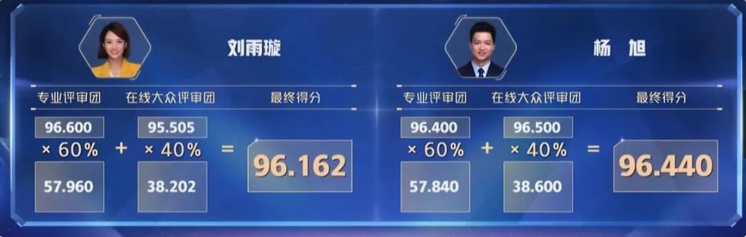 而在这场同类型题目的比拼中,杨旭以微小的差距胜过了选手刘雨璇。