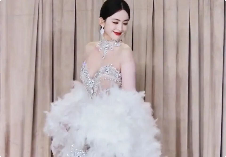 这一次,娜扎挑战了一套珍珠羽毛透视裙,早在之前类似的造型也在热巴身上出现过,但是很显然,娜扎的这套更大胆,更魅惑,透视的礼裙设计,将娜扎的好身材展现地相当美艳,她仅仅是慵懒地坐在那里,就足以让人血脉膨胀。