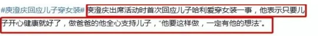 同样引发热议的还有庾澄庆的儿子哈利,哈利平日的造型风格其实很小众,庾澄庆也曾经公开回应过哈利喜欢穿女装这件事,站在庾澄庆这个父亲的角度,他对儿子的爱好是充分肯定的。