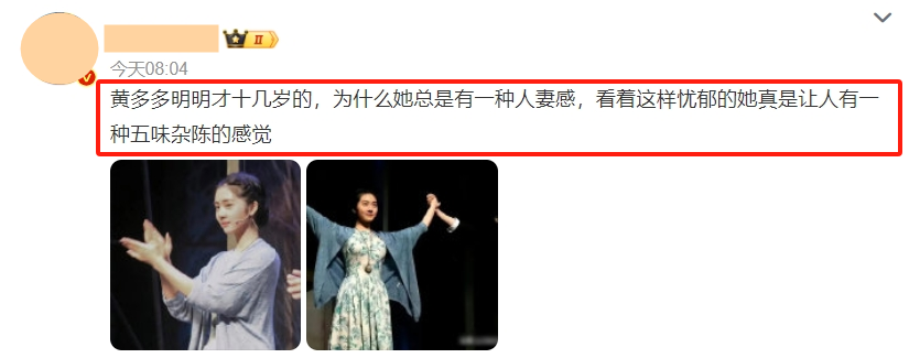 网友单单依靠一个简单的话剧造型,就开始脑补黄多多的情感精力,猜测她的私生活,字里行间好像没有特别辛辣恶臭的辱骂,却处处透着对一个女孩的恶意。