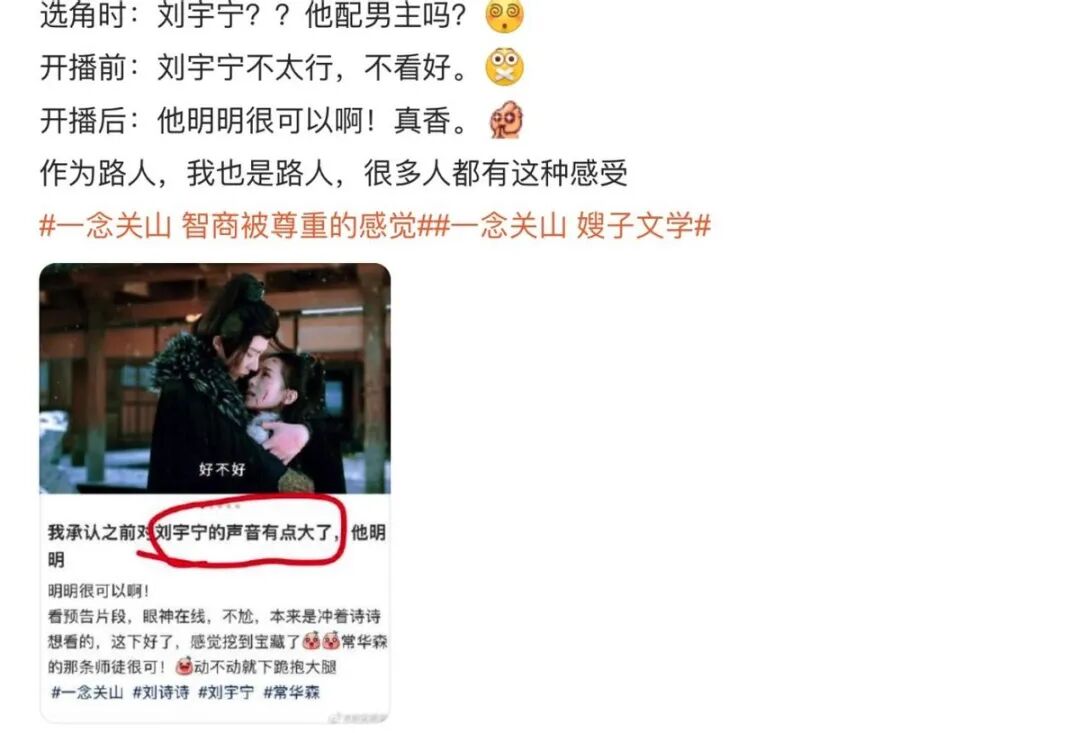 但谁能想到,随着《一念关山》的播出,演技方面的发挥,直接让备受看好的刘诗诗,以及备受吐槽的刘宇宁极限换位。