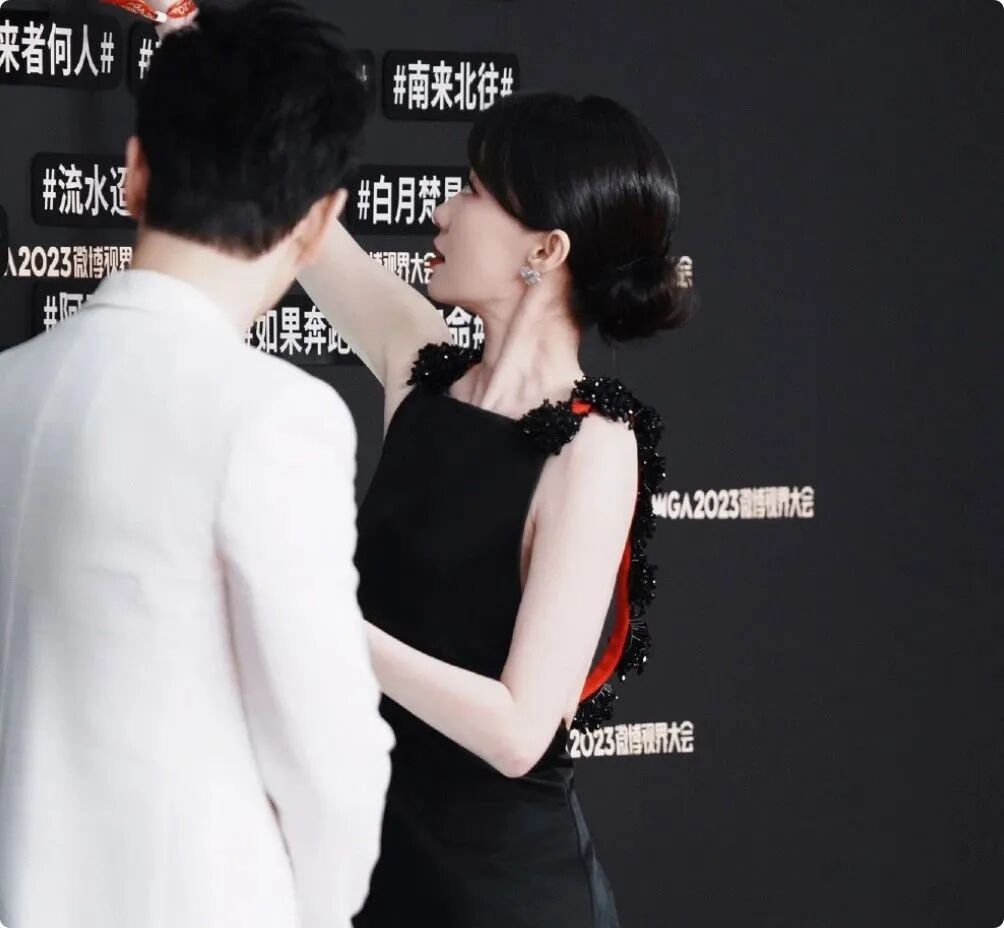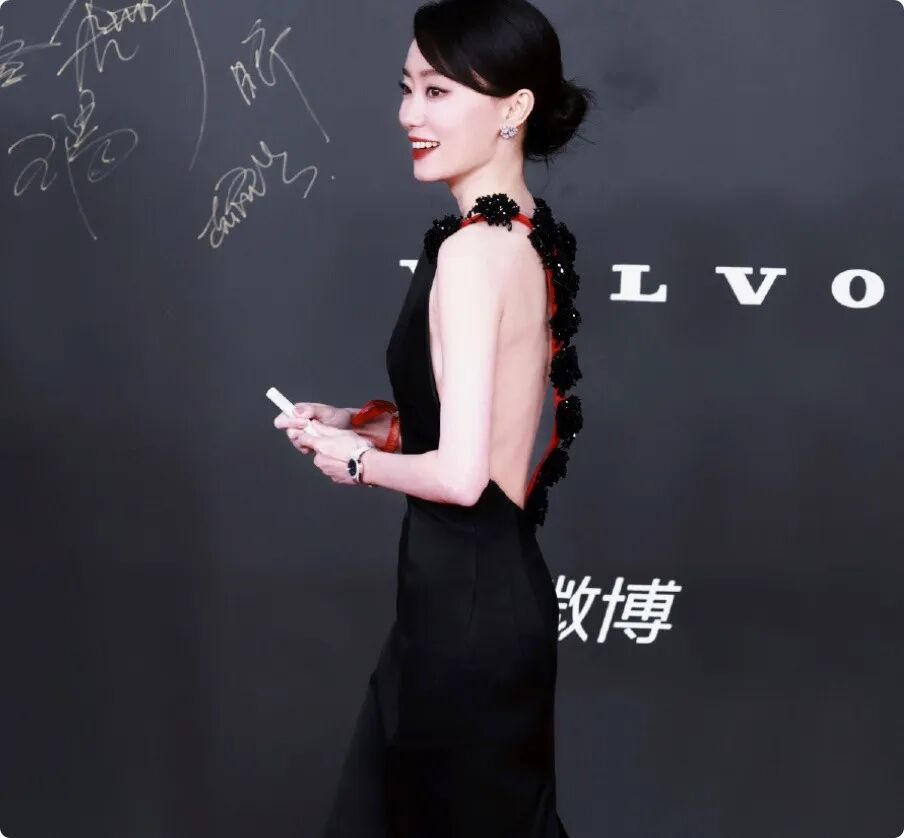 北京这一夜,张小斐选择了一件款式普通的黑色礼裙,乍一看这一套礼裙普普通通,但其实裙子在肩带处有花朵点缀,从正面一直延伸到美人背,没有刻意的凹曲线,也没有过分的露肉。