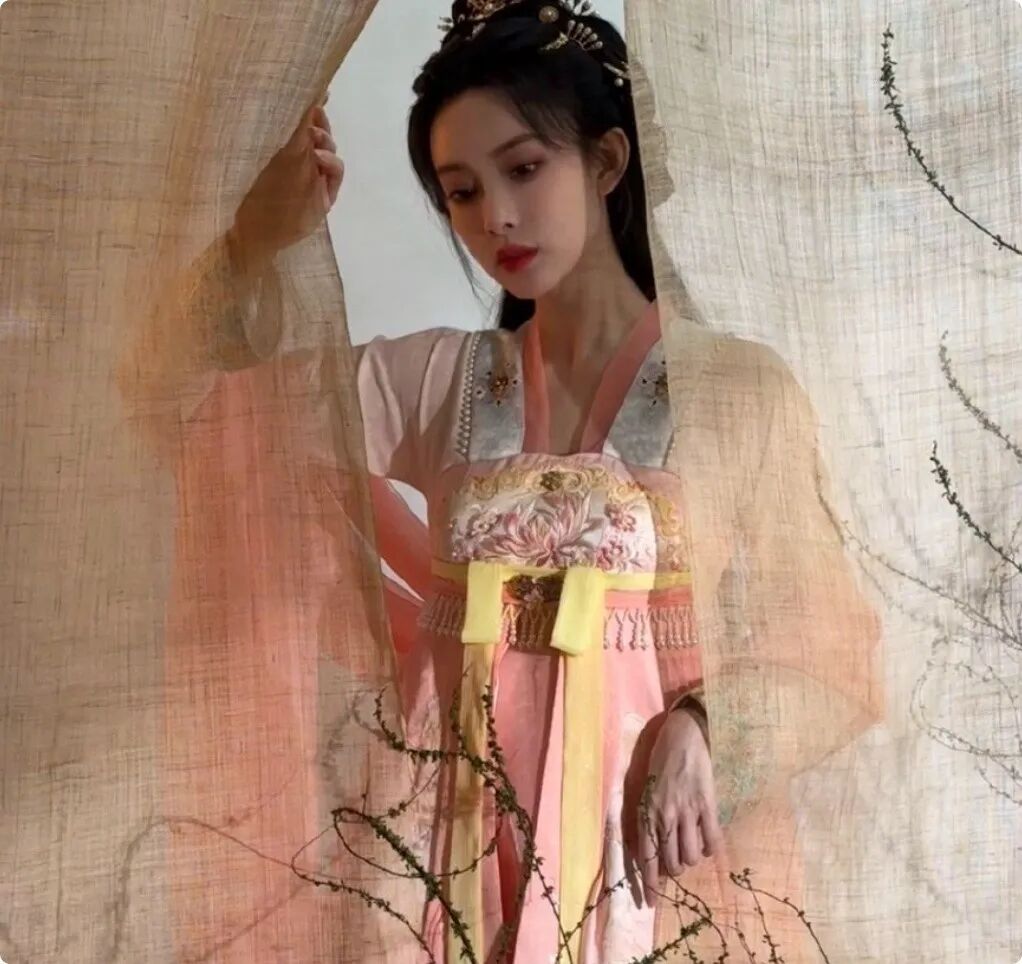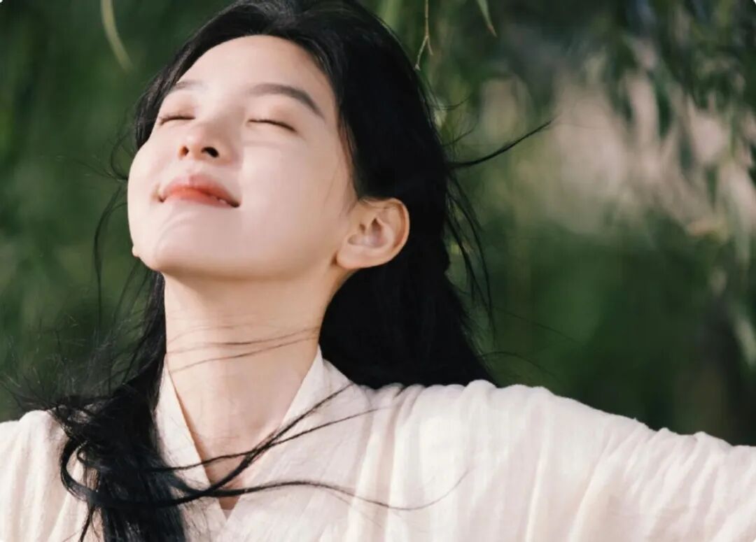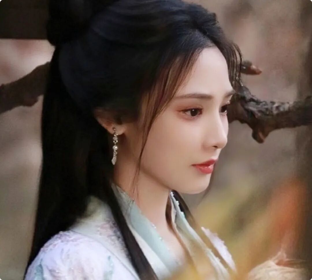 但话说回来,造型可以不适配,但演员的气质和长相还是吸睛的。画面里的章若楠一看就充满了故事感,她眼里的反光,都给人一种楚楚动人的感觉。