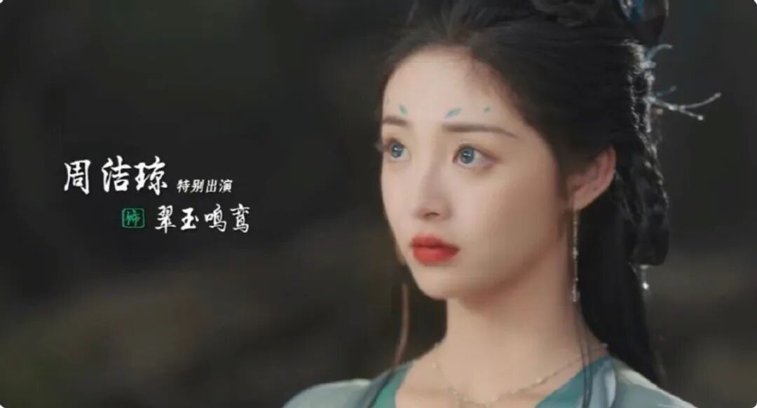 第五位扛起看点的女演员是饰演翠玉鸣鸾的周洁琼,翠玉鸣鸾也是原创角色,而周洁琼在饰演这个角色时的妆造,就和角色名字一样,笼罩着“青翠”的水墨感。