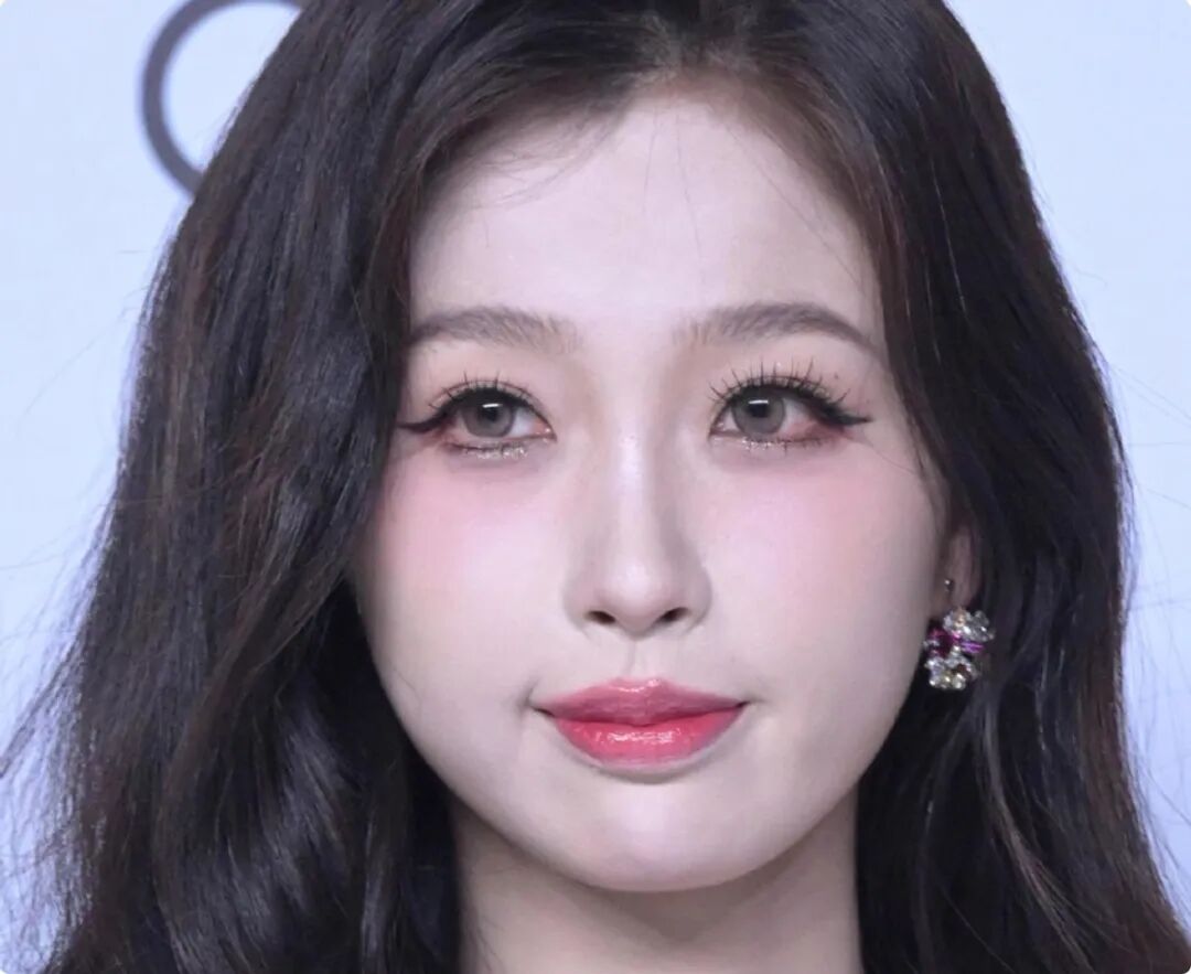 特写时,虞书欣的两腮红到好像动画人物屁桃,眼睛下面的卧蚕高光堪比孙悟空的火眼金睛,但其实在红毯上越常规的礼服款式就越要给妆容做减法。