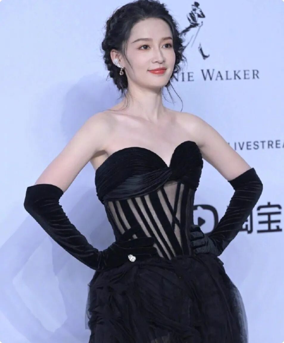 好比吴宣仪,也是人气很高的偶像爱豆,长相、身材都很出众,但这次她的造型太舞台了,整个人不够高级,尤其是黑色的纱感礼裙加手套,在她这个年纪的驾驭下,有种廉价的风尘感。