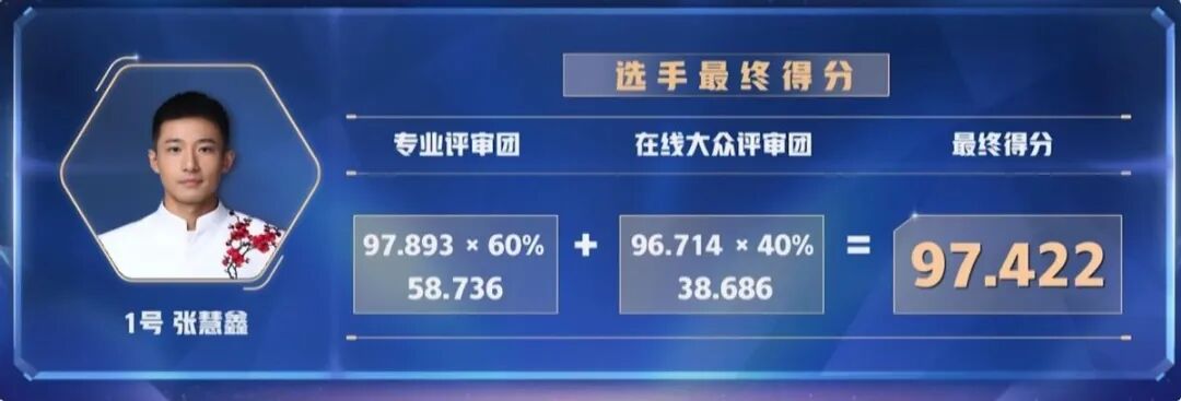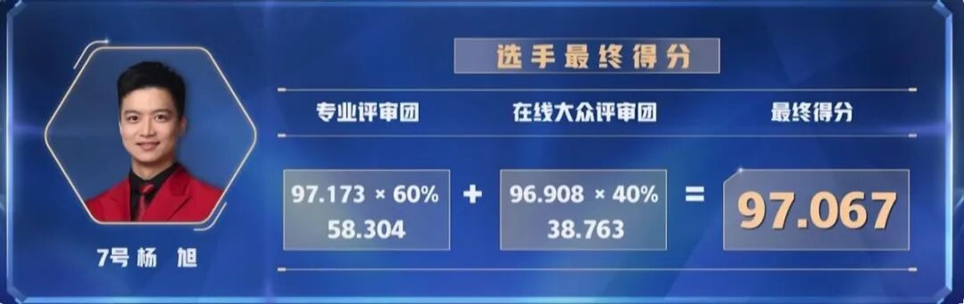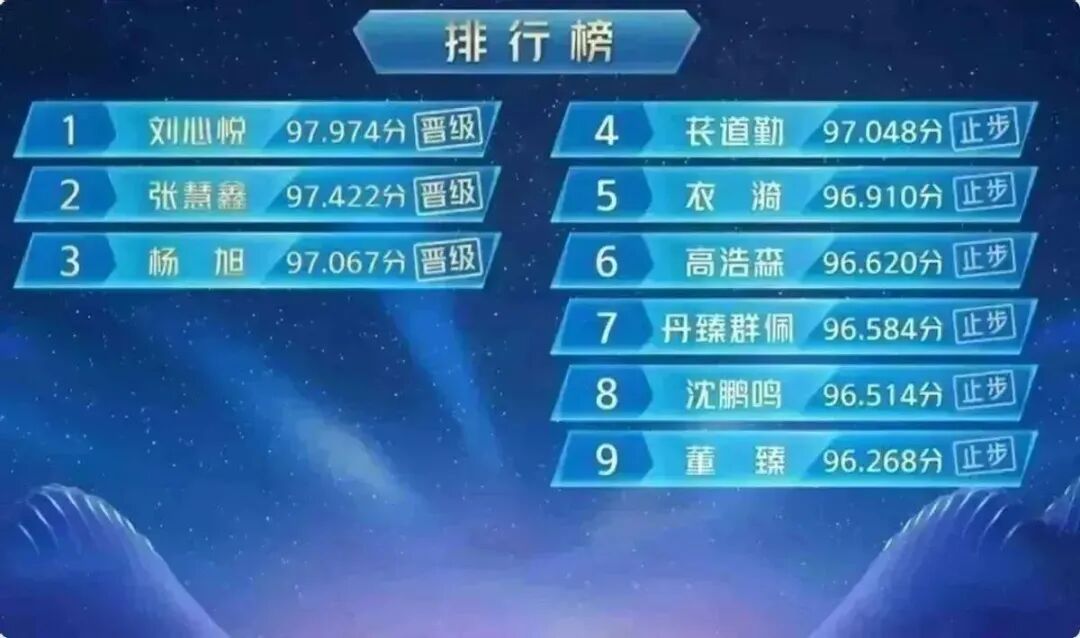 至于另一位晋级的选手杨旭则是以97.067的分数卡上了97分高分,拿下了全场第三。
