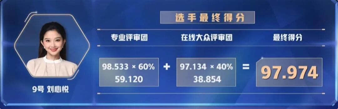 这也是她的短片内容,更加抓人,更有意思的原因。而正是这样的表现,让刘心悦拿下了全场的最高分97.947分。