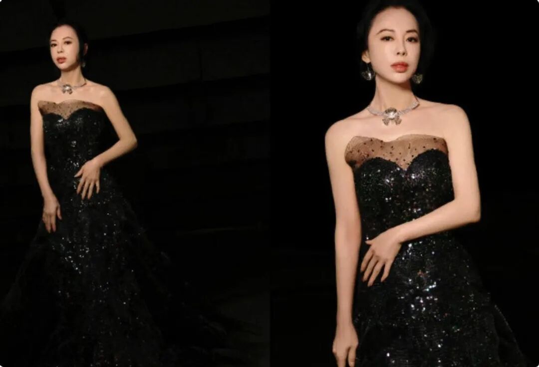 红毯上,黄绮珊选择了一条黑色的裹胸纱裙,裙子的上半身紧紧勾勒出黄绮珊的曲线,裙子下半身融合了公主裙和鱼尾裙的设计,看起来高贵仙气的同时,也有一些下坠的设计重点,突出了黄绮珊身材比例的优势。