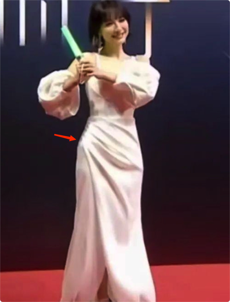 极致的腰臀比是曲线美,可吴昕的腰臀比全靠骨头顶起来,乍一看胯部尖锐的骨骼感在轻薄的礼裙下显而易见。