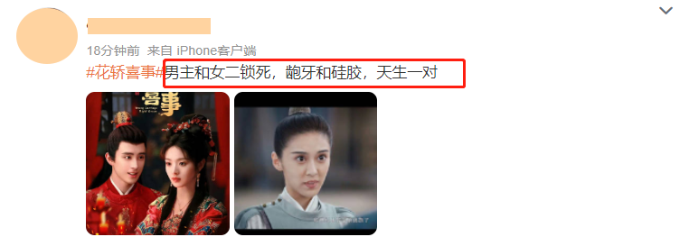 总而言之,在选角方面《花轿喜事》的问题很大,有了经典版的对比,不合适的选角问题只会被无限放大。除非改剧情,改人设,不然《花轿喜事》上线后的结果,就是被原版吊打。