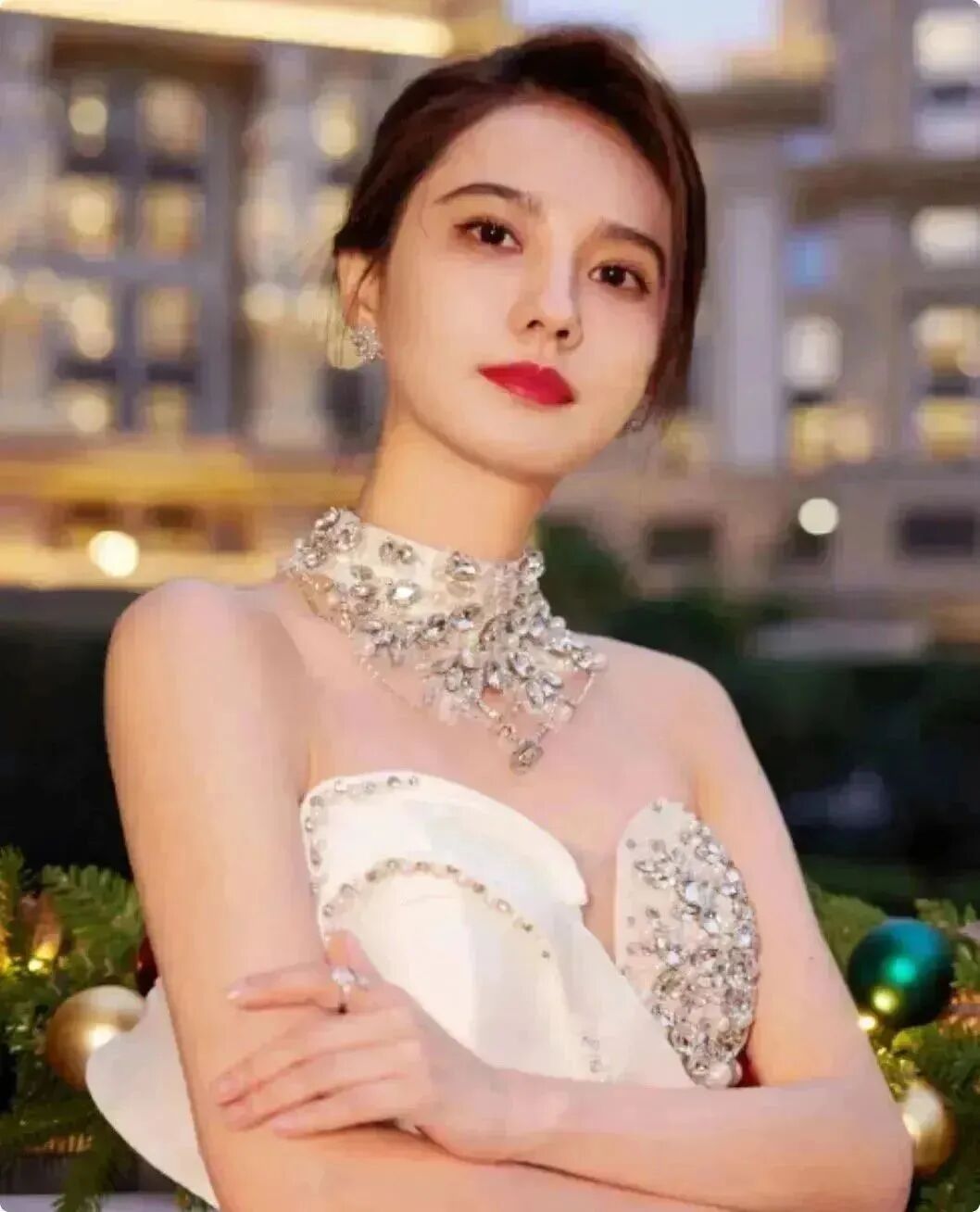 而姜珮瑶的身材、五官、颜值都衬托出了这条裙子的高贵。