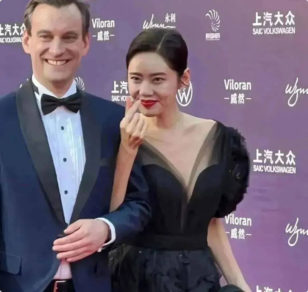 时不时用手示意身边的老外看镜头,一副红毯“老油条”的模样,全程松弛自如,没有半点紧绷感。