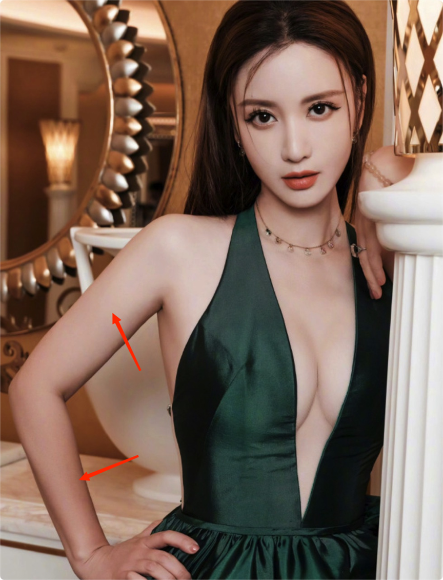 不过张萌身上的色差非常明显,尤其是小胳膊和大胳膊的连接处,脖子处都有被晒黑的迹象。