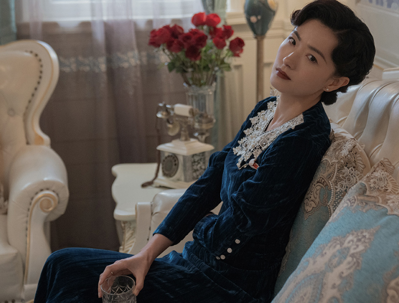 同时,民国的波浪卷盘发以及柳叶弯眉、红棕色的口红都让苏雅露看起来飒爽又不失妩媚。