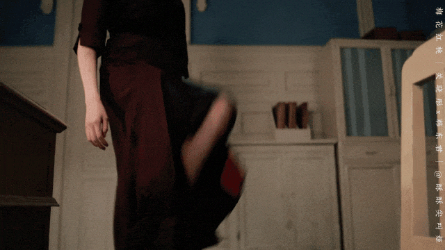 下身是黑色蕾丝大腿袜,导演还特别贴心地给了关晓彤一个从丝袜上拿出小刀的特写。