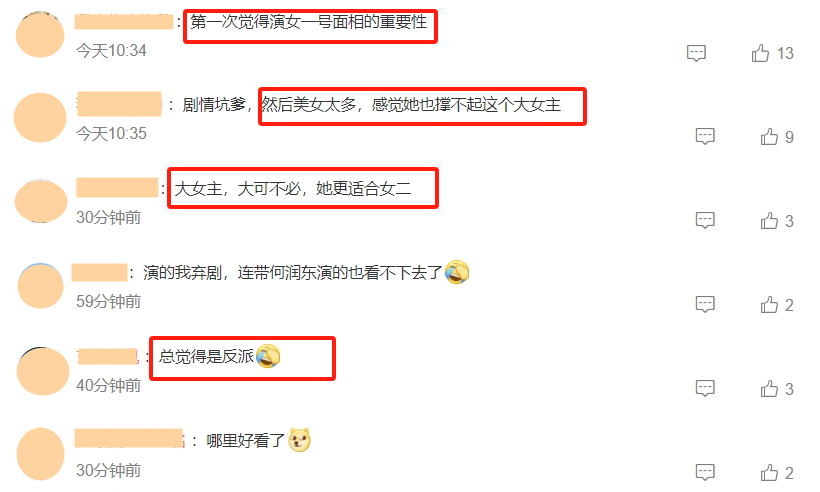 对此很多网友都有强烈的同感,有网友直言“第一次觉得女一号面相的重要性”,有网友称“大女主,大可不必,她更适合女二”。