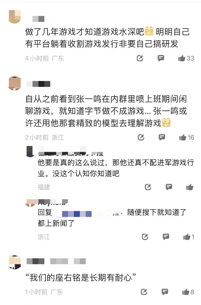 社会和行业对于字节跳动此举的反应则是复杂且多样的。一方面,业界对于字节跳动这种大规模的战略调整表示理解,认为这是公司在不断变化的市场环境中作出的必要调整。另一方面,也有声音在说,字节一开始就不应该高投入的去做游戏。创始人对于游戏的微妙态度也被认为是游戏业务停止的原因。