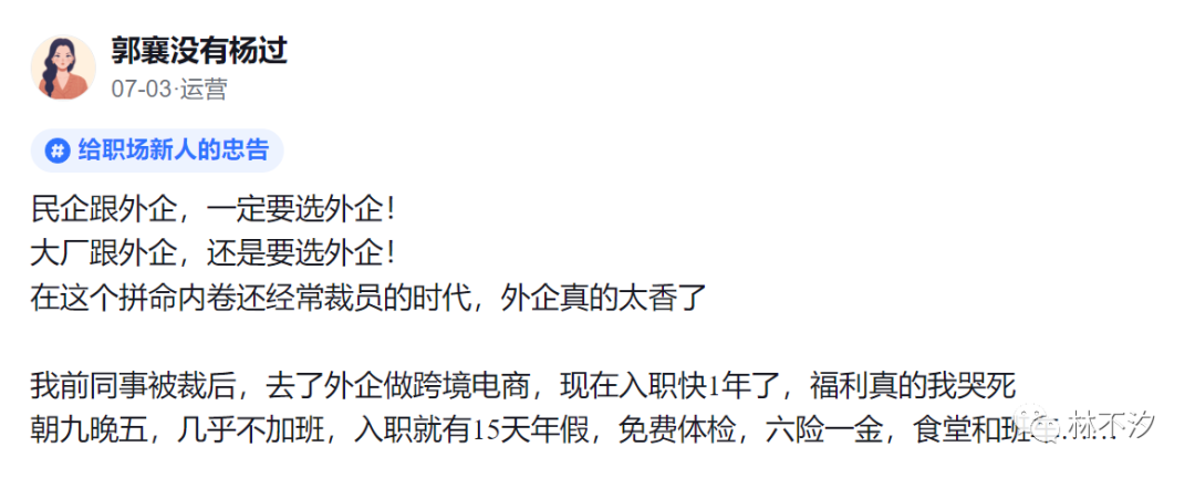 外企是出了名的福利好、发展路径清晰,很多想进外企的人都是朝着这些好处来的。