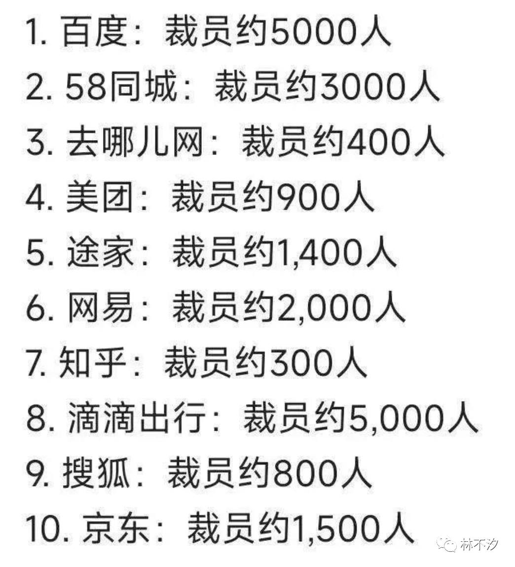 近期一份2023全年裁员人数名单在网络上疯传,各大公司裁员人数看起来都十分吓人。