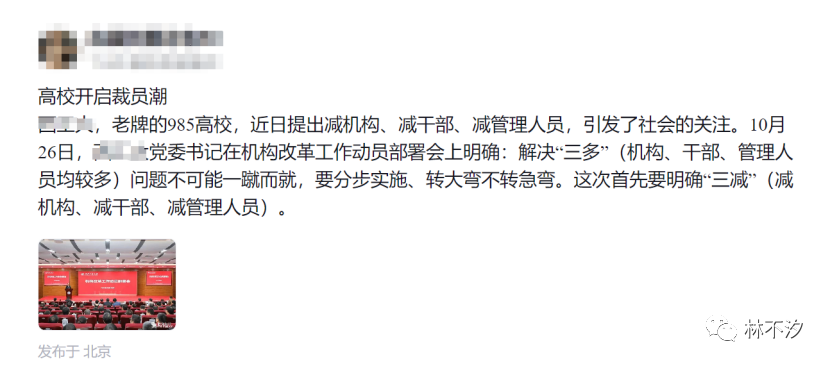 这次的某985高校也不甘示弱,提出了“三减”计划,要减机构、减干部、减管理人员。老师们都快被这“三减”搞得心情比吃了苦瓜还苦。