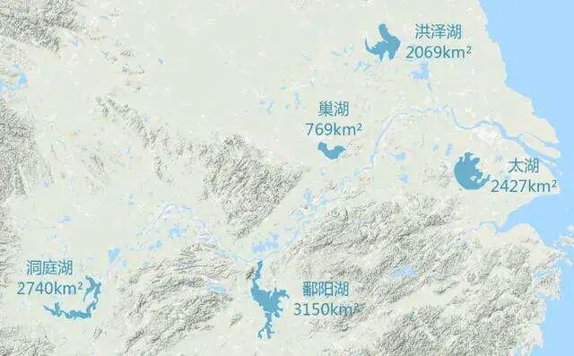 地理书一直说中国五大淡水湖分别是:鄱阳湖、洞庭湖、太湖、洪泽湖、巢湖。其中,位于江西省北部的鄱阳湖是我国最大淡水湖,面积一般标注3150Km²,位于湖南省北部的洞庭湖是我国第二大淡水湖,面积一般标注2740Km²。老大的数据是唯一“3”字头,面积优势明显,反而第2、3、4名洞庭湖、太湖和洪泽湖的是两千多Km²,差距不明显。