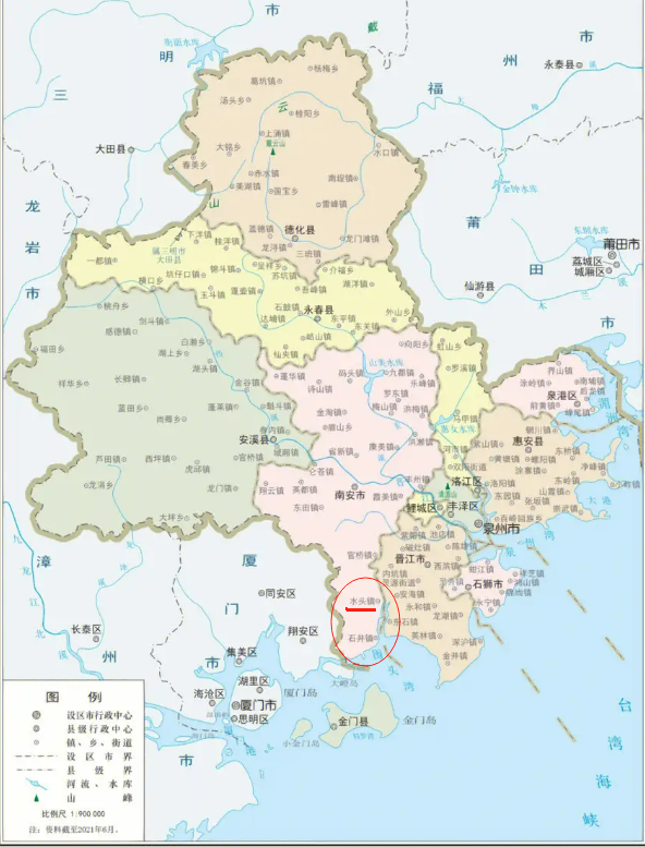 ▲水头镇在泉州市地图上的位置,注意有一个深入陆地内部的小海湾