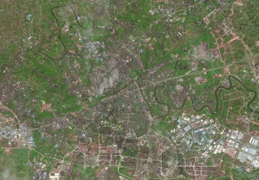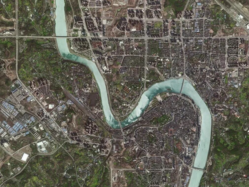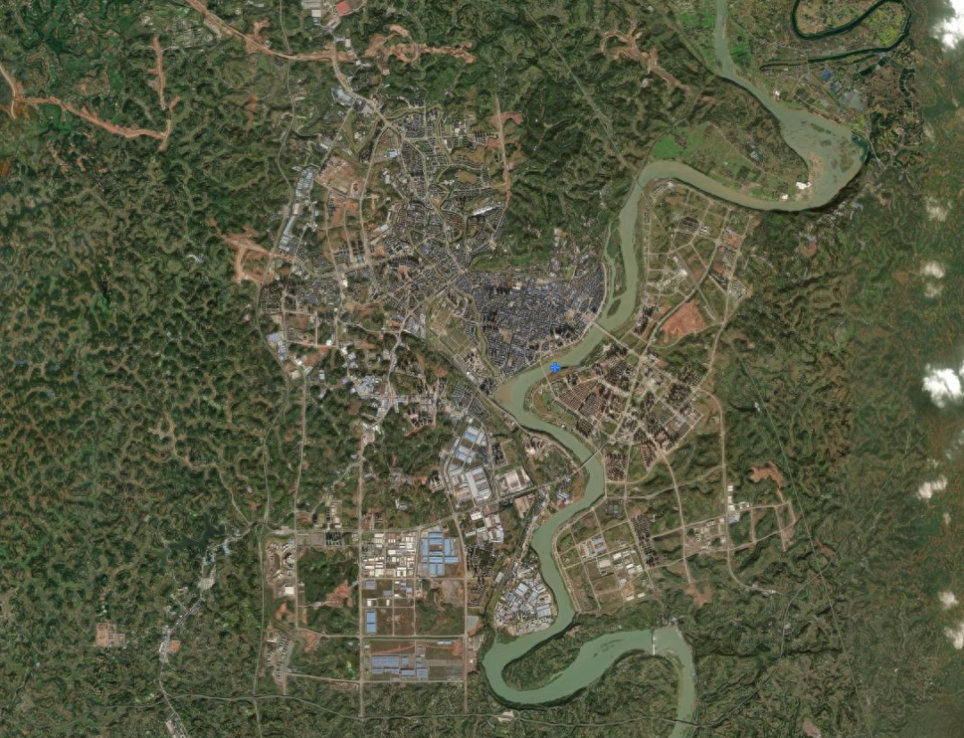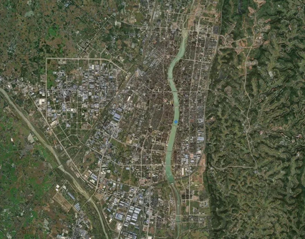 ▲沱江第四城:自贡市卫星地图,自贡在其支流釜溪河上。