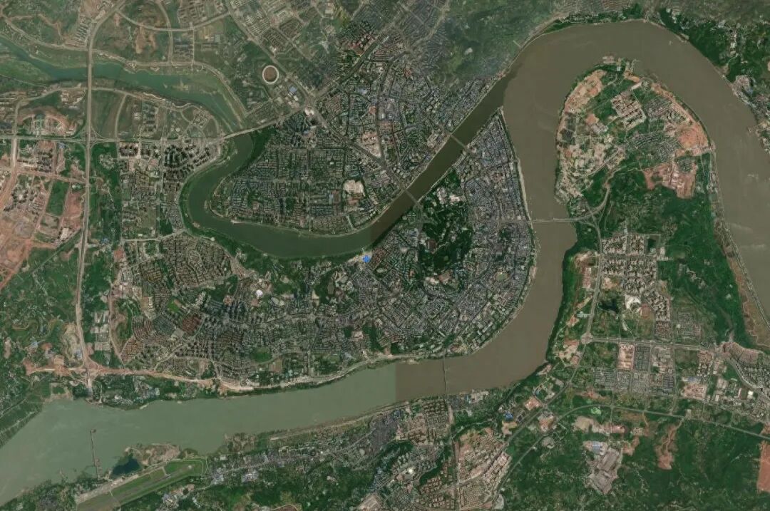 ▲沱江第三城:内江市卫星地图,河道看起来挺宽