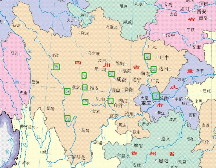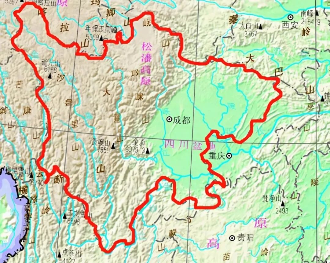 下面两张分别是标准中国地图的四川、重庆部分,以及标准中国地形图的四川省: