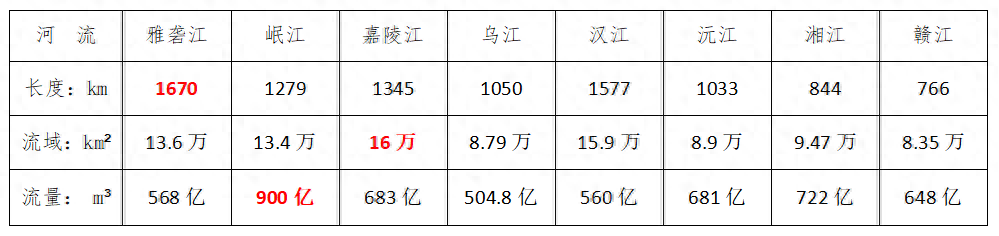 我们知道,传统的长江8大支流是:雅砻江、岷江、嘉陵江、乌江、汉江、沅江、湘江、赣江。沱江非常遗憾,长712km,比第八名赣江短一小点;流域面积3.29万km²,比第八名赣江小很多,这也没办法,沱江夹在岷江和嘉陵江流域之间,能独立入长江已经很难得了,剩下的流域必然不多;沱江年平均净流量约140亿m³,由于流域面积小,水量也比较小,比八大支流都小得多。