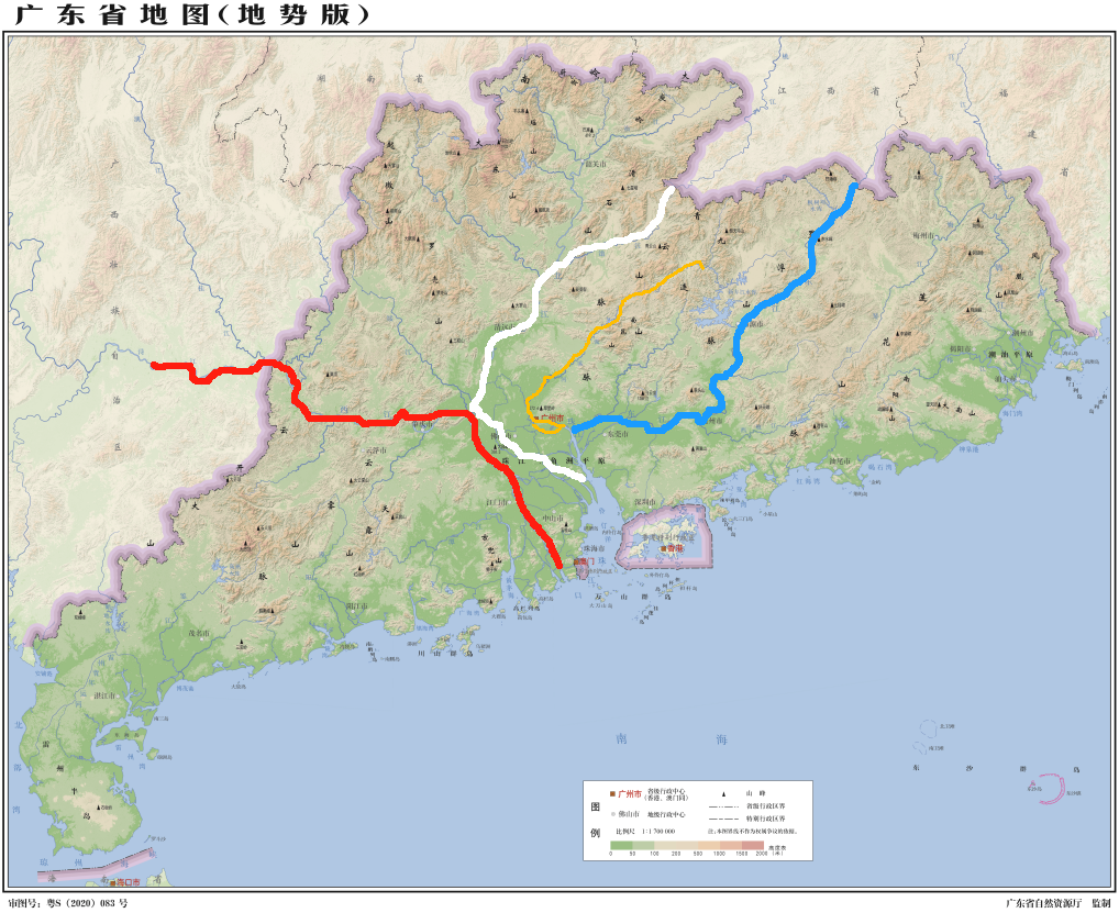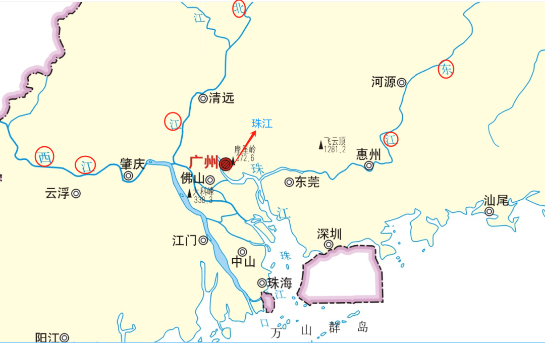 西江干流全长2214公里,流域面积35万多平方公里,涉及滇、黔、桂、湘、粤5各省份,还有一小点越南,年均水量2300多亿立方米;北江干流长573公里,流域面积5.2万平方千米,涉及湘、赣、粤3省;东江干流长562公里,流域面积3.53万平方公里,涉及粤、赣二省。可见,比起广州市区的珠江这条小河,西、北、东三江可谓是巨无霸,特别是西江,是我国华南地区的最大河,水量在我国仅次于长江(黑龙江是界河水不能全算)。