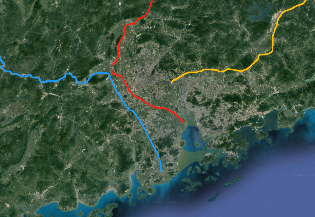 其实东江和珠江关系相对还大一点,取决于如何看待狮子洋这个河口湾,如果把狮子洋看做是河道,那珠江和东江还真是流到一起入海的——但那也只能是,珠江是东江的支流这样看,而不是反过来珠江代表东江,因为大小、长短有公论。如果把狮子洋看做是海,那就还是不相干的两条河,各自入海。