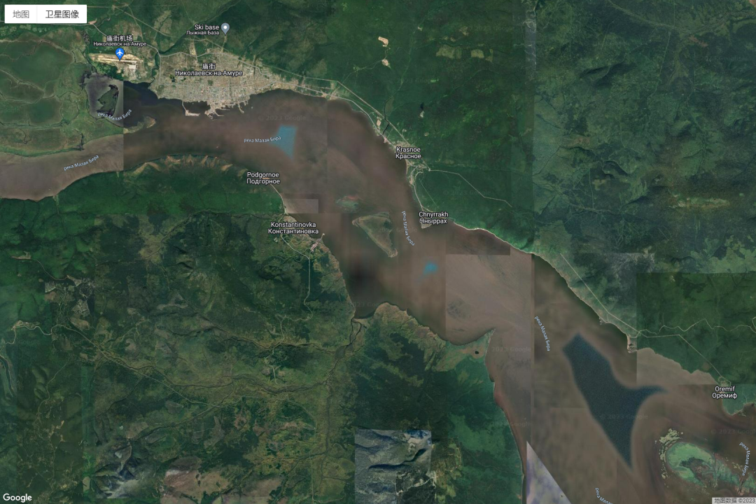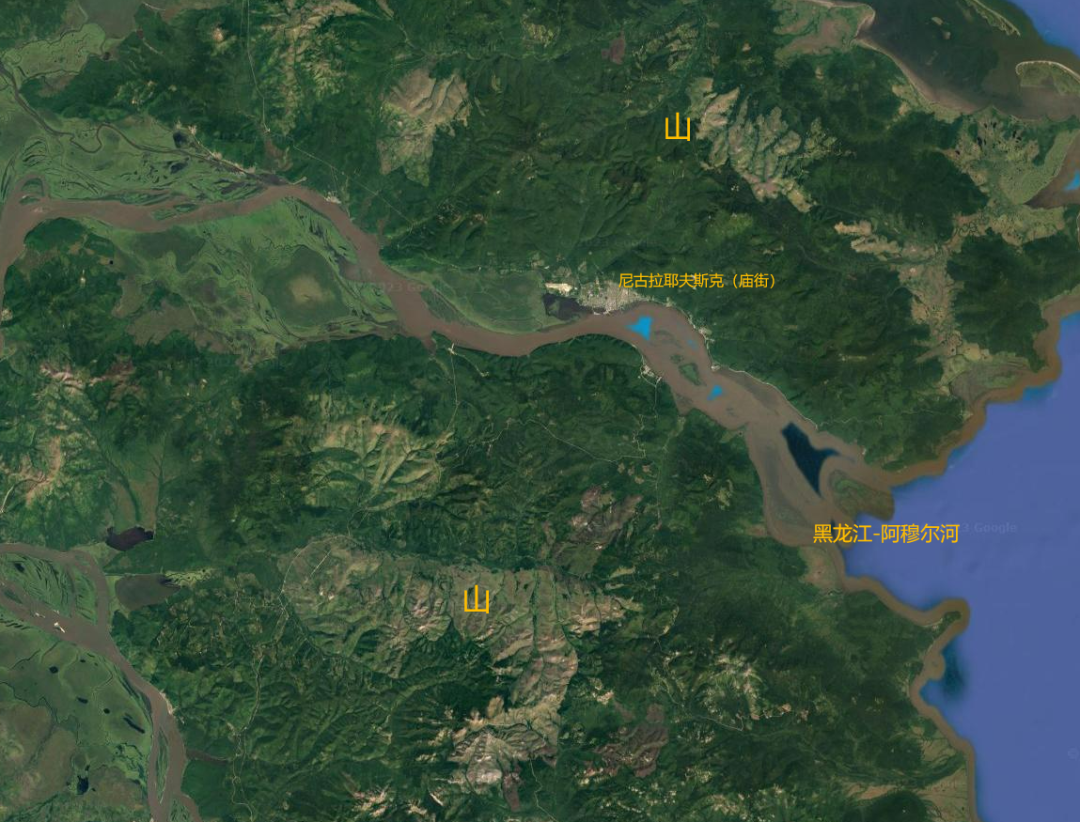 四、黑龙江-阿穆尔河入海口地形不友好。刚说过,黑龙江按地形整体趋势不应该这么流的,最后这一段是劈开山地入海的,这造成了入海附近两岸都有山,土地狭窄,不容易发育出大一点的城市;另外,河流又比较多沙洲,水浅,没钱投入航道建设,行不了大的船舶。