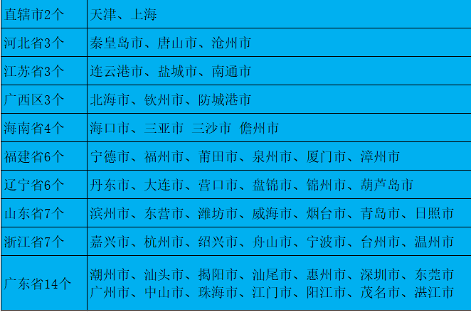 ▲我国内地沿海城市列表
