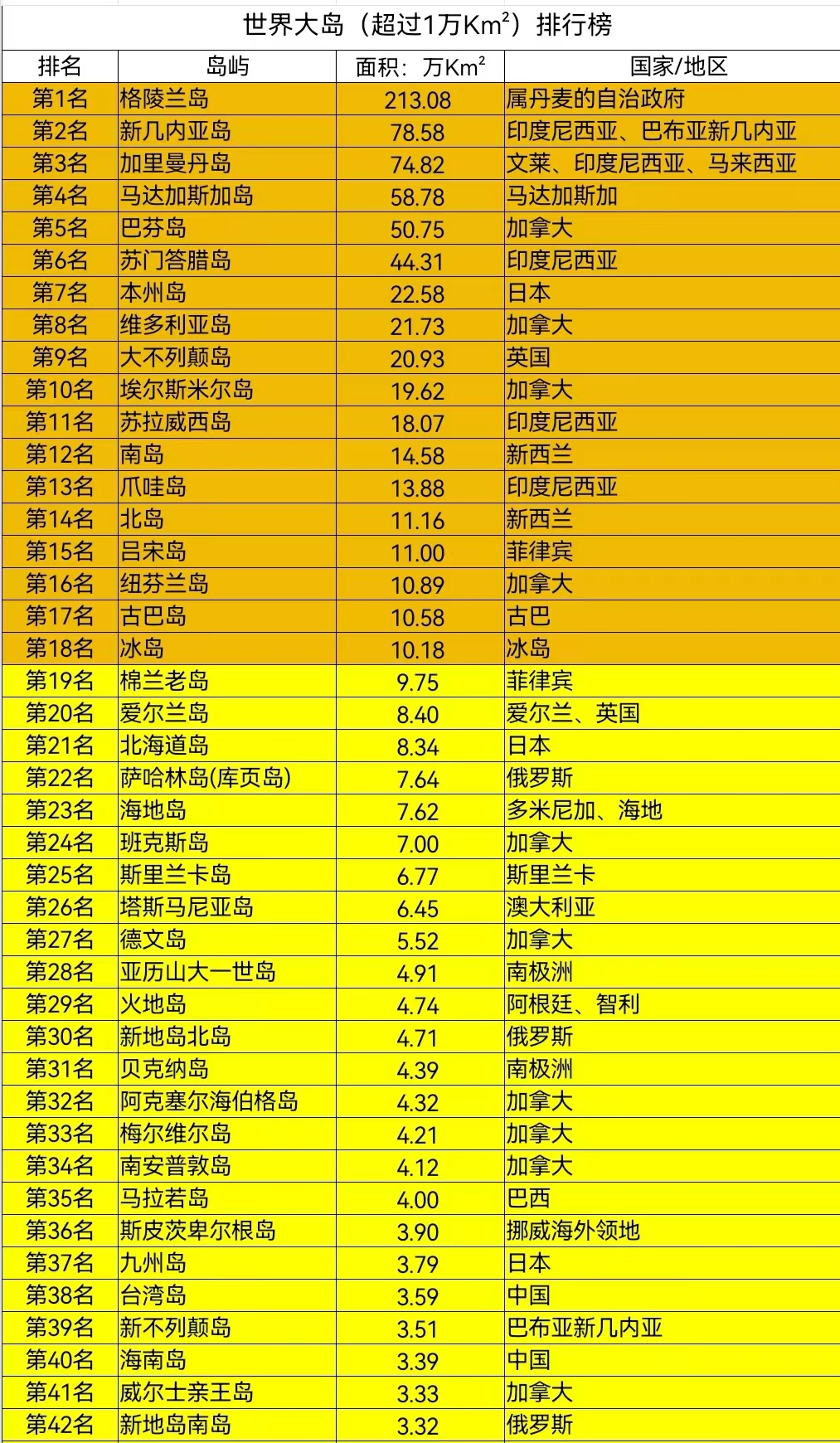 日本是岛国不假,但这些岛在世界成千上万的岛屿当中,是鹤立鸡群的存在!全世界只有77个面积过万平方公里的岛,日本四大岛全部在列,最大的本州岛面积世界第7,而且注意,世界大型岛屿多数在寒带或热带,日本列岛是温带岛屿,规模大、价值高。