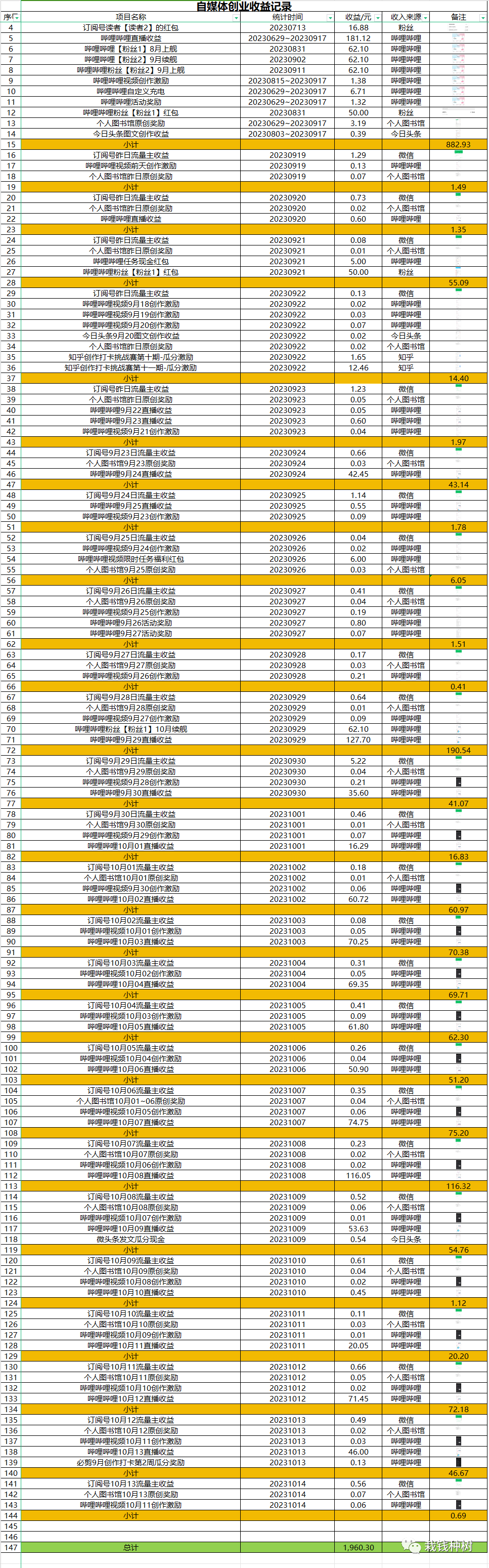 20231014自媒体收入情况: