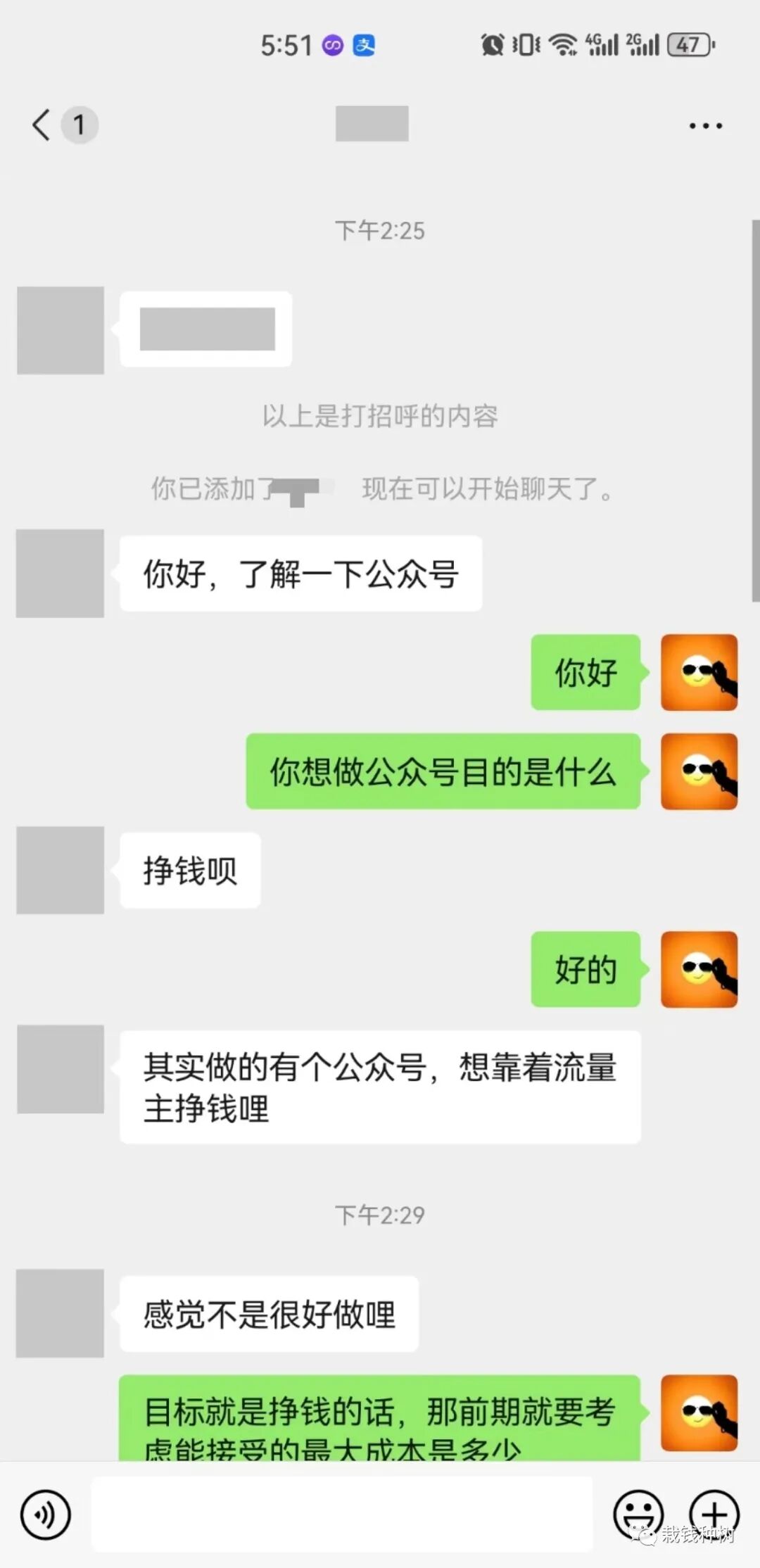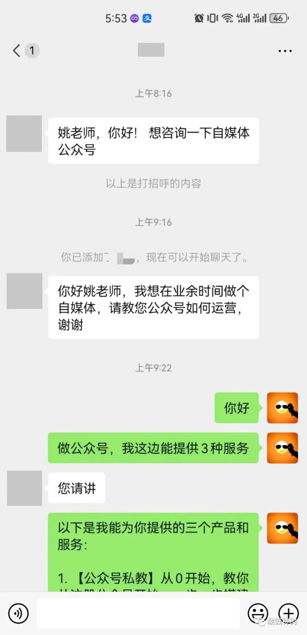 可以从前面的聊天记录中看到,有人说想和我学习一下如何做公众号。