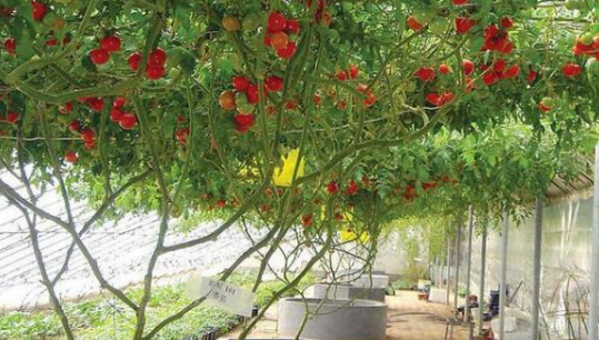 这玩意儿不是单株的,而是一种像树一样生长的番茄,一年能长到五米高。别看它个头大,但生命力强,能摘十年的果子。